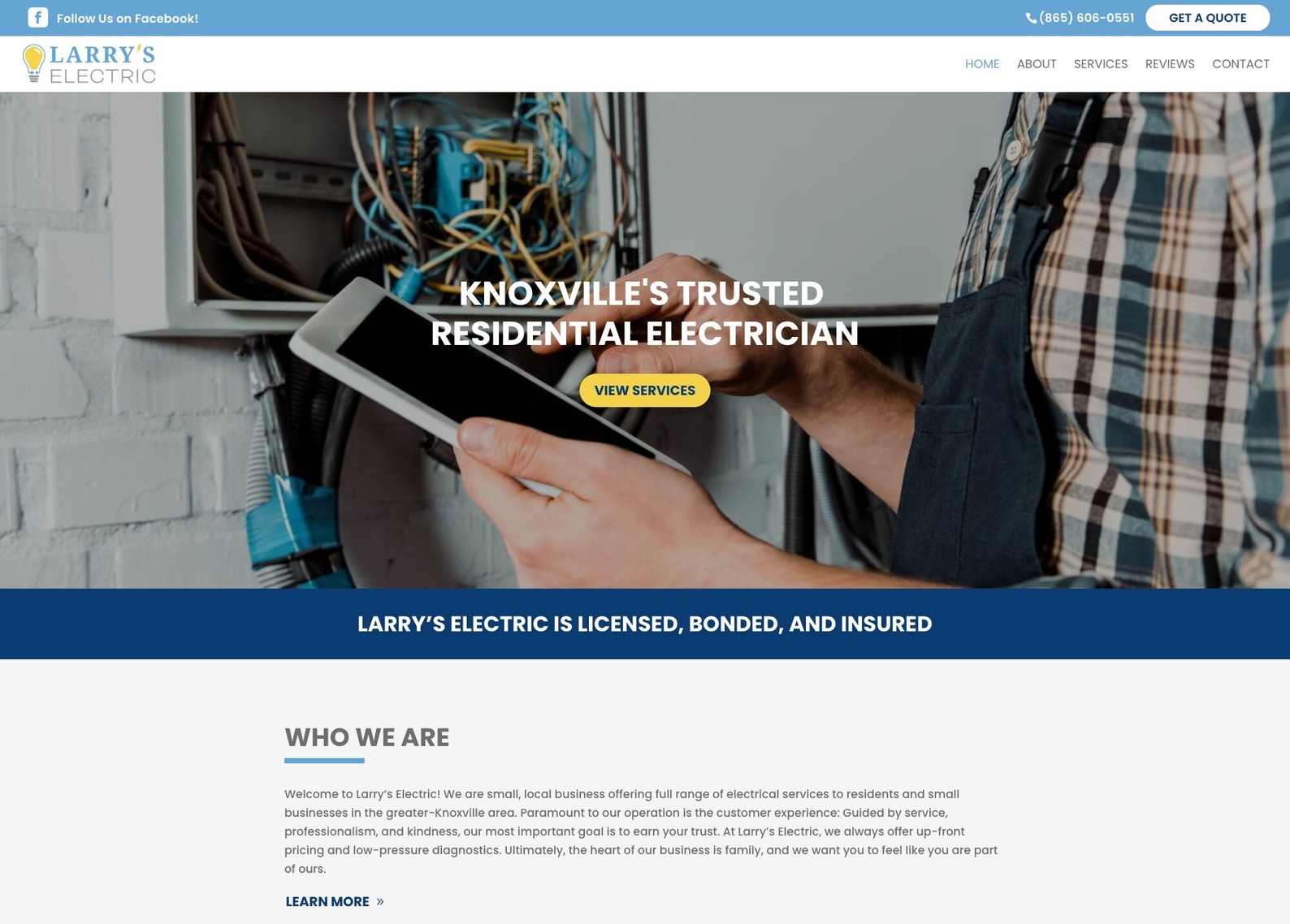 Larry’s Electric is a small, local business offering a full range of electrical services to residents and small businesses in the greater-Knoxville area.