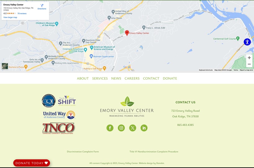 Emory Valley Center, a non-profit organization based in Oak Ridge, provides support and services to children and adults with severe, lifelong disabilities, as well as to their families.
